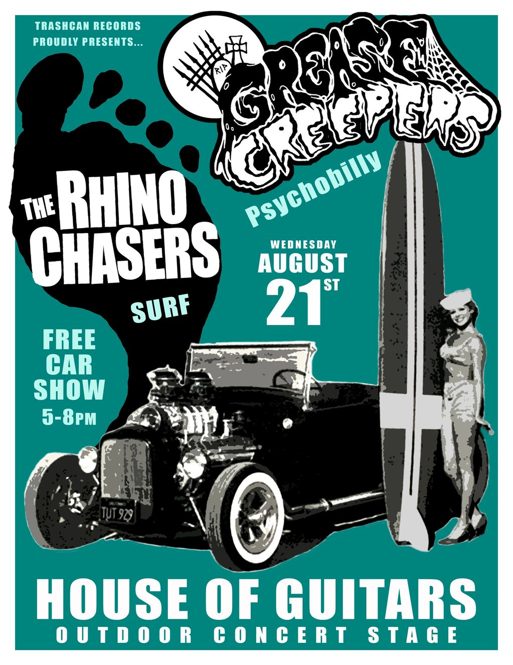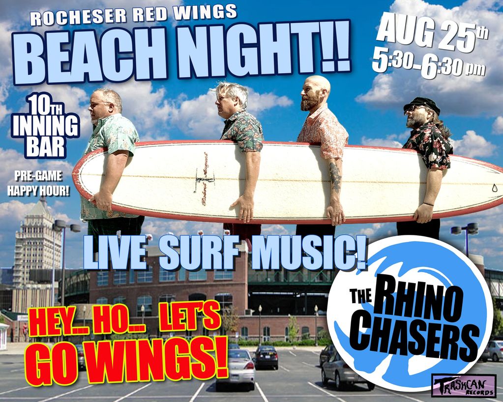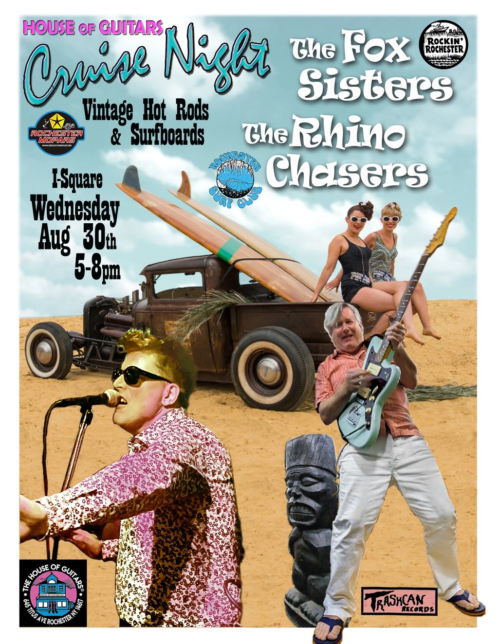 Come out to see some boss hotrods and do the Surfer Stomp with Irondequoit's hottest surf band... The Rhino Chasers!